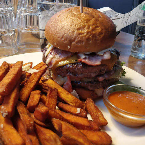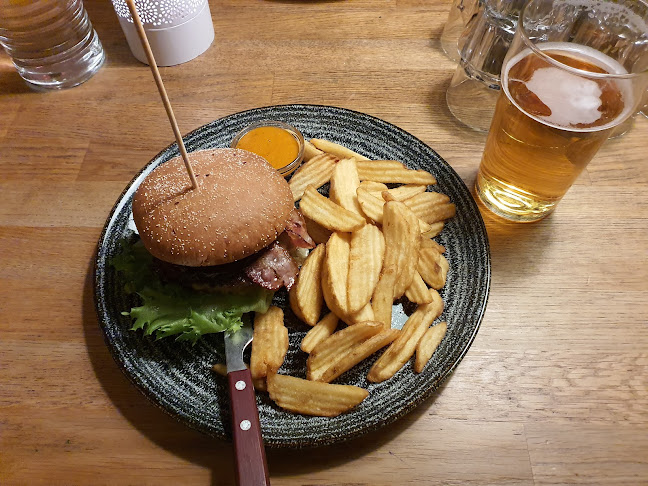 Miten sieltä löytyy jättimäiset hampurilaiset? Kiitos jotenkin mahtavien ranskalaisten! 🥳 Mutta kun kuulin joku harmitelleen, että annokset olivat pieniä ja pihvit ylikypsiä, niin… no, voi olla, että keittiön kiireet näkyivät. Tiedättekö, noilla ruokalistalla oli myös hyvää lohipastaa, mutta… odottamaton sattuma saattoi jättää epätasapainoa.