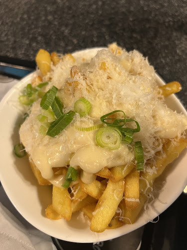 Lisäksi, jos jätät lautasen täyteen, tarjoavat he myös naposteltavaa, kuten herkullisia loadedeja ranskalaisia. Elävää musiikkia on tarjolla, ja paikka on koiranystävällinen! Lounas tai illallinen? Molemmat käyvät!