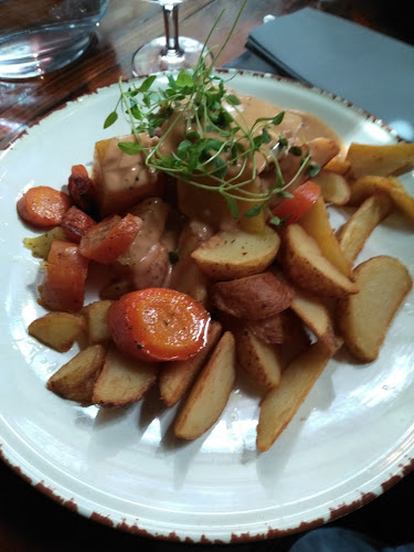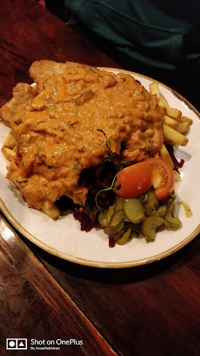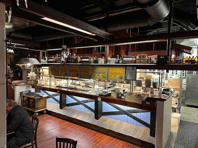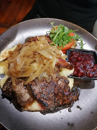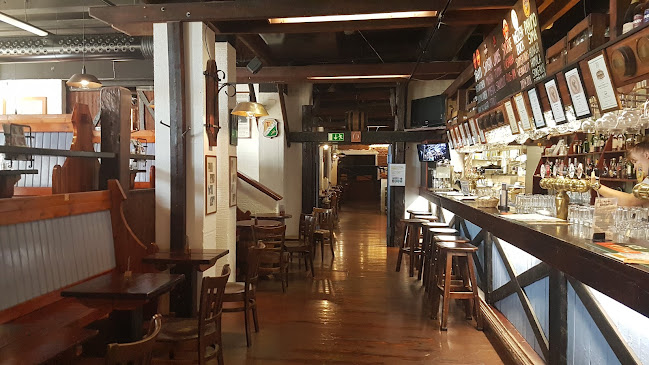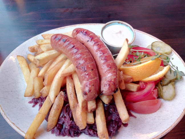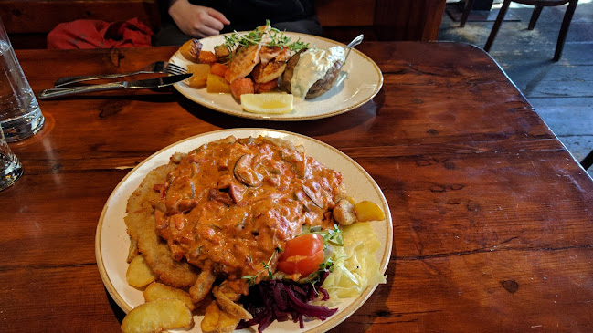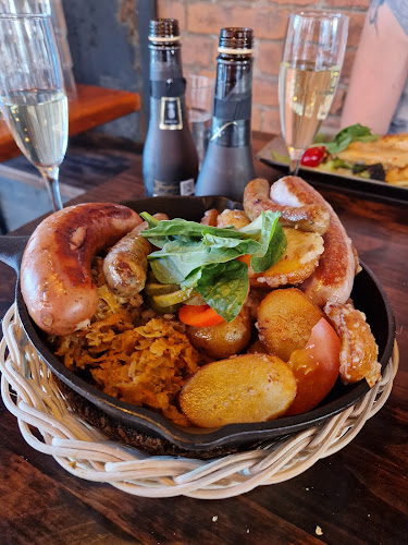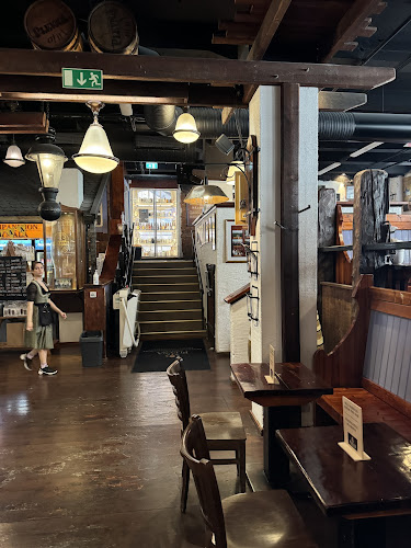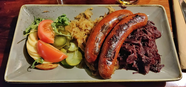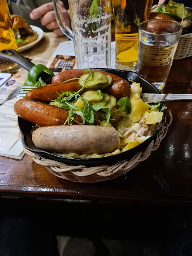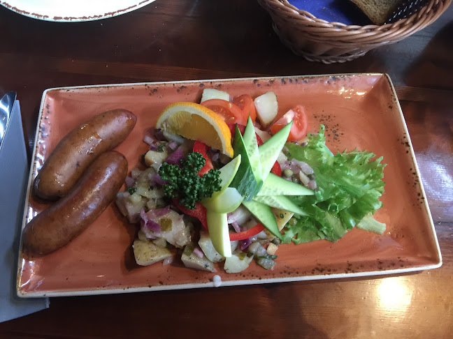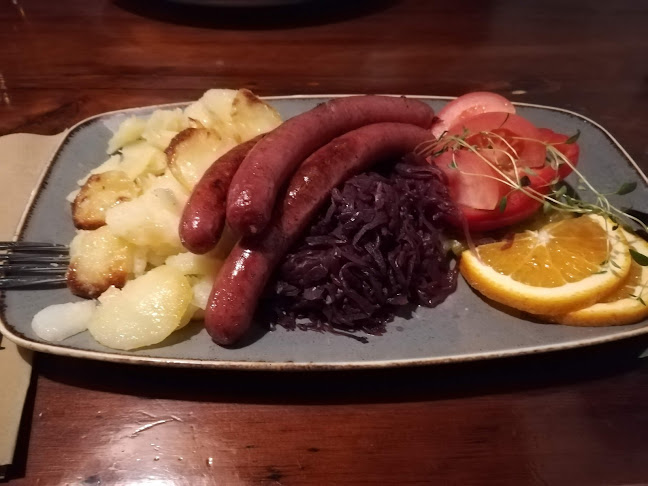 Sisällä tunnelma on rento, ja henkilökunta on pukeutunut perinneasuihin. Se tuo hauskaa, perinteistä vibat. Täällä voi nauttia lounaasta, illallisesta tai vain oluesta, ja kokemuksesta ei jää puuttumaan. Muistan, kun tilasin eräänä iltana saksalaisen makkarapannun – huh, se oli järjettömän iso annos!