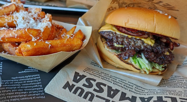 Mahtuu paljon kokemuksia ja arvosteluja! Suurin osa niistä sanoo, että hampurilaiset on hyviä, ja jotkut erittelee erityisesti tulisia vaihtoehtoja. Maut on kuulemma kohdillaan, mutta annoskoot? No, siinä tuntuu olevan sanomista! Jotkut sanoivat, että hinnat on ihan poskettomat. Melkein 16 euroa yhdestä burgerista ilman juomaa! Sepä on.