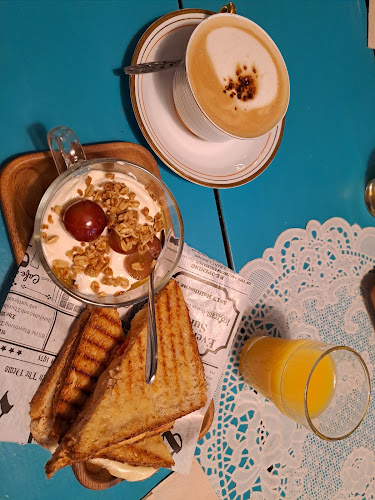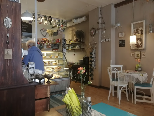 Kun astuit sisään, tunnelma on heti niin kotoisa, että tuntuu melkein kuin olisit mummolassa. Arvatkaapa mitä? Pöydillä on herkullisia leivonnaisia, ja kahvi tuoksuu kuin pienen kylän aamupäivässä.