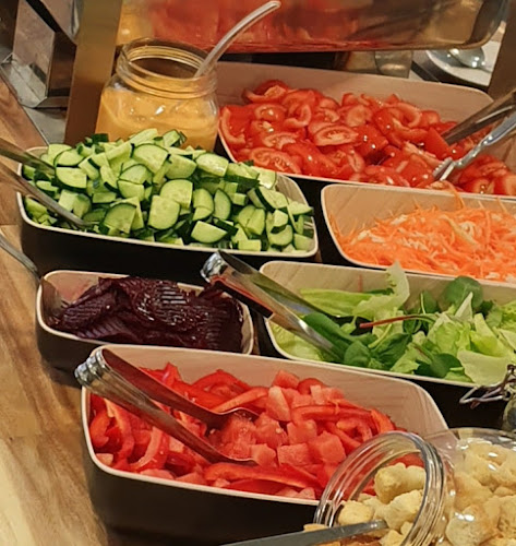 Ruokatarjonta? No, siitä ei ole tingitty. Lounasaika on erityisesti suositeltavaa. Jos kaipaat kotiruokaa, se löytyy täältä. Itse olen usein tilannut noita lämpimiä annoksia; kyllä, ihan himoittavan hyviä! Erityisesti se savulohikeitto – nam! Raskaammat ruuat saavat urheilijat jaksamaan, ja se on tärkeetä.