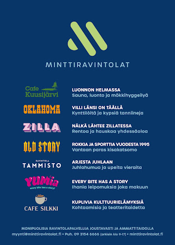 Tikkuraitti 17:ssä sijaitseva Minttiravintolat on kuin Vantaan makumaailman sydän, joka sykkii jo melkein 30 vuotta. Tämä ravintolaperhe, johon kuuluu mm. Zilla ja Oklahoma, on kehittänyt paikallista ravintolakulttuuria. Heidän paikoissaan on tarjolla ruokailua paikan päällä, ja kahvit ovat todistetusti kiitettävän hyviä!