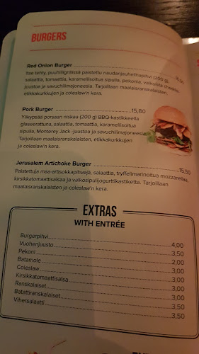 Ja illalla? No, silloin paikan tunnelma muuttuu! Burgereita, pizzoja ja jotain, mitä voit vain kutsua Red Onionin klassikoksi – kyllä, ruoat ovat maistuvia. Pizzat kuulemma erityisen hyviä.