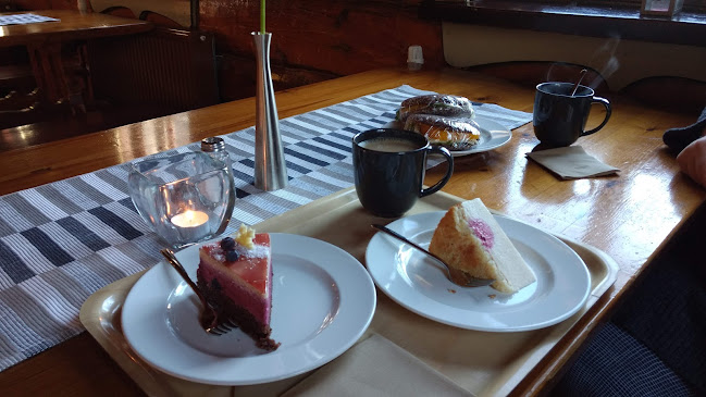 Kahvilan energisyys on tarttuvaa. Siellä voi istua ulkona, ihastella maisemia ja nauttia kupillisen hyvää kahvia. Koira kaverikin on tervetullut sisälle, mikä on iso plussa! Täällä voi myös järjestää kokouksia tai suurempia juhlia, kun tilaa riittää.